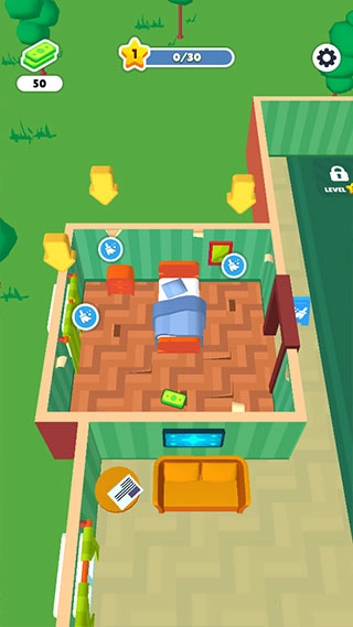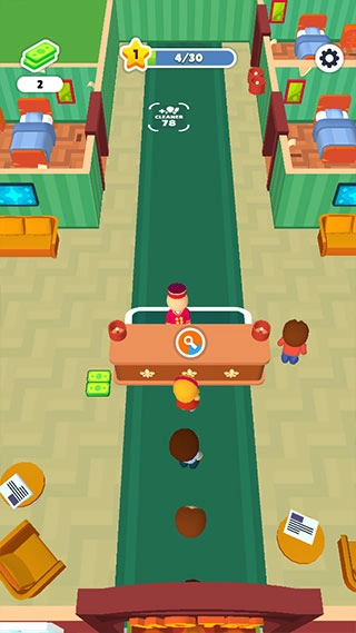 要先为客人安排好房间,等他们入住结束后,得及时对房间进行清理打扫,这样才能继续接待下一批客人。只需操控小人移动到待清理的区域附近,系统就会自动启动清理程序。