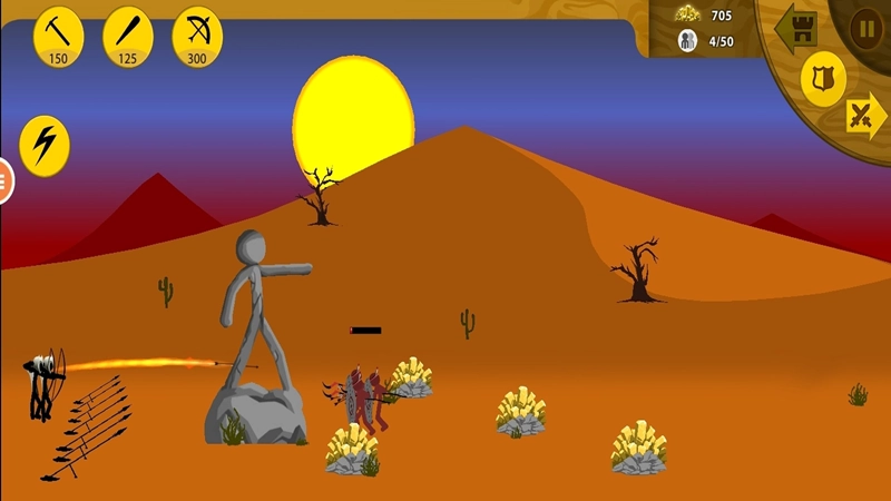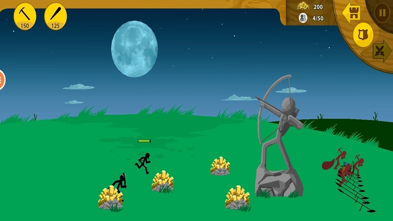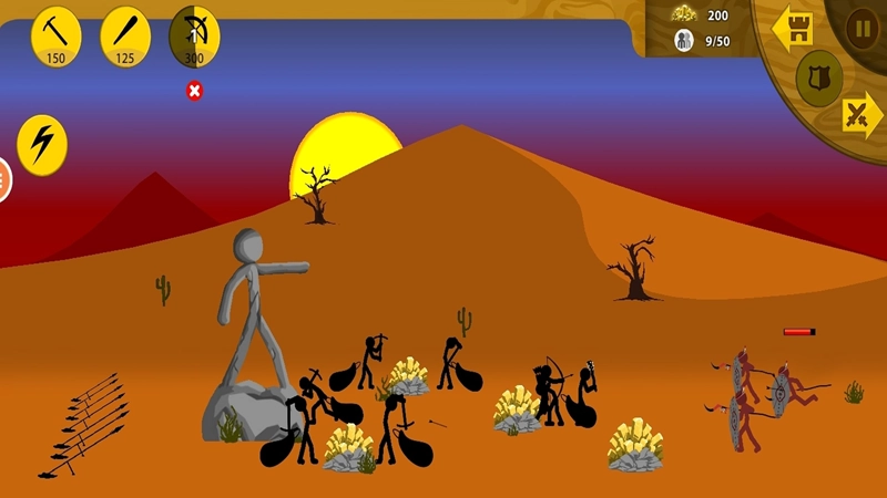 玩家可以亲临紧张激烈的战场,指挥火柴人勇士进行作战,体验从士兵训练到战场指挥的完整战争过程,感受运筹帷幄的乐趣。