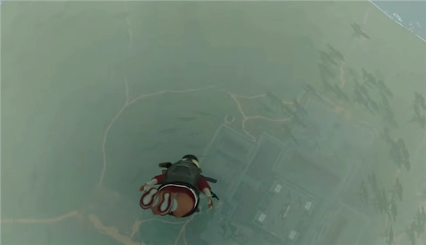 所有的玩家都需要跳伞,并且越快到达地面,越能够得到更多资源。 这就需要一定技巧,首先要留意当跳出机外时、会直接处于自由落体状态,并且要是视点望向是会影响下降速度与落点的。 如果跳出机外后望向远方,下降速度就会减低,最低为126Km/h,并会向所望之处持续前进,而如果直接望向正下方地下,下降速度就会得到提升,最高可达234Km/h。