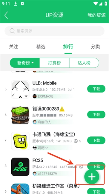 除了搜索资源外,若有发布游戏的需求,还可以点击右下角的+号来进行发布。
