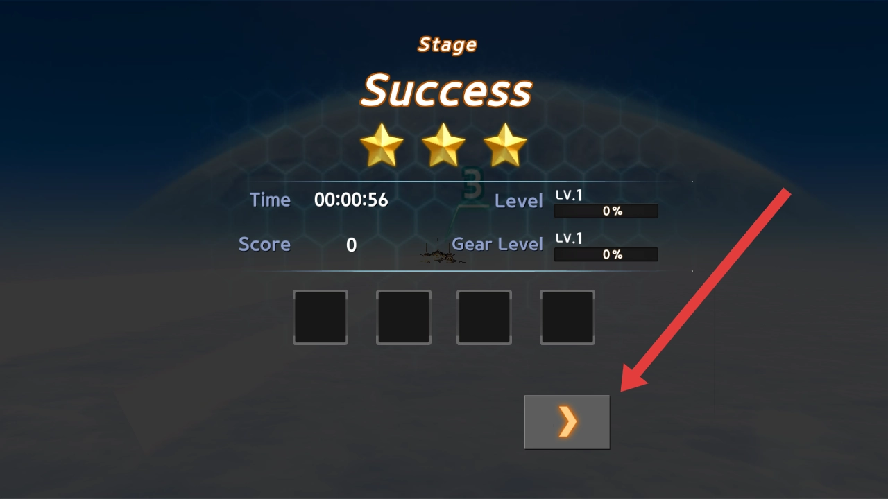 当Lv1关卡内的所有敌人都被消灭并成功通关后,你需要点击界面底部的橙色箭头按钮,以此进入下一关。
