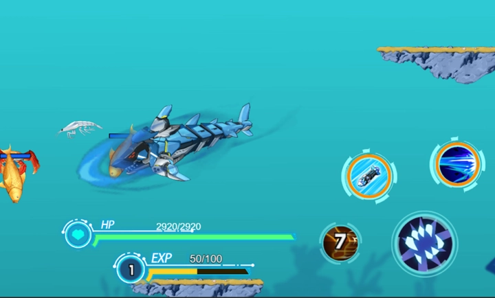 3. 无需网络连接,弹窗打扰,涵盖主线进化历程、支线挑战任务、隐藏Boss对决等丰富内容,打造纯粹沉浸的深海探索之旅。你可以操控鲨鱼在水中游动,当它靠近体型比自己小的生物时会自动发起吞噬;通过不断吞噬积累经验值就能提升等级,等级提升后可吞噬的目标范围也会随之扩大。