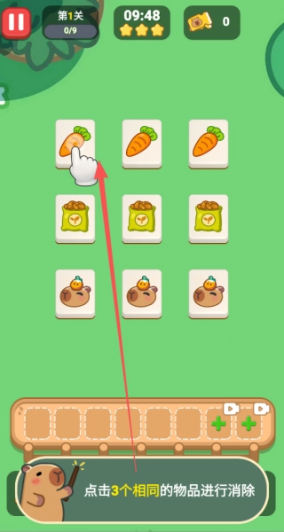 直接点击屏幕上相邻的方块,只要成功把三个相同图案连在一起,就能完成基础的消除操作。