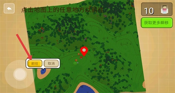 在地图界面里,点击你想要去的地方(比如湖泊所在的位置)。
