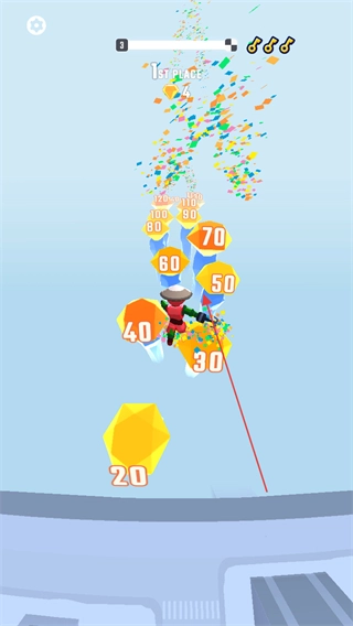 把飞钩与奔跑结合起来,收集途中的分数块,就能拿到高分奖励。