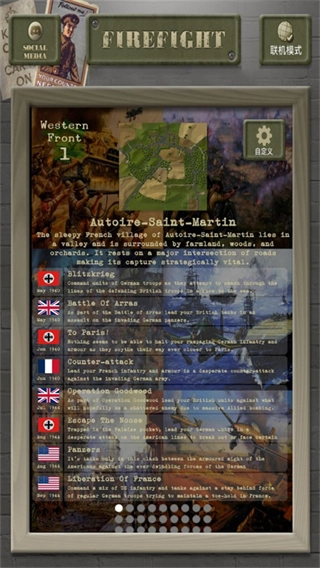 《装甲突袭》是一款现代战争题材的策略游戏,玩家将化身军团指挥官,在广阔的世界地图上开启征战之旅。游戏中,你需要进行资源管理、推进科技研发,并与盟友协同作战,核心目标是不断增强自身军事力量,在全球范围内的万人实时对战中脱颖而出,铸就专属于你的战争传奇。