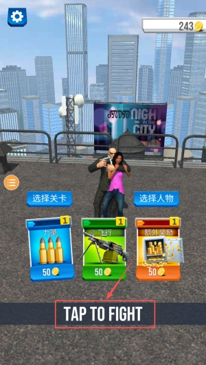 战斗的进行方式:当游戏准备妥当后,点击“TAP TO FIGHT”按钮,即可开启射击战斗。
