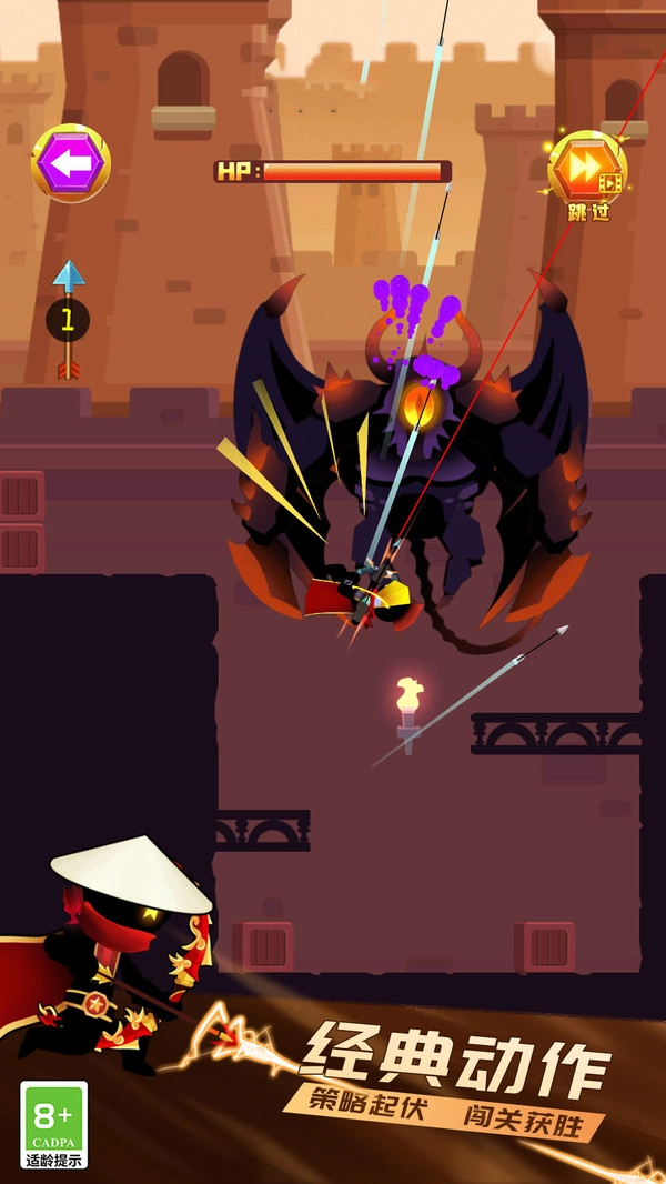 在《一箭超人》这款游戏中,玩家能体验到丰富多样的战斗环节,并且可以操控角色顺利完成这些战斗挑战。