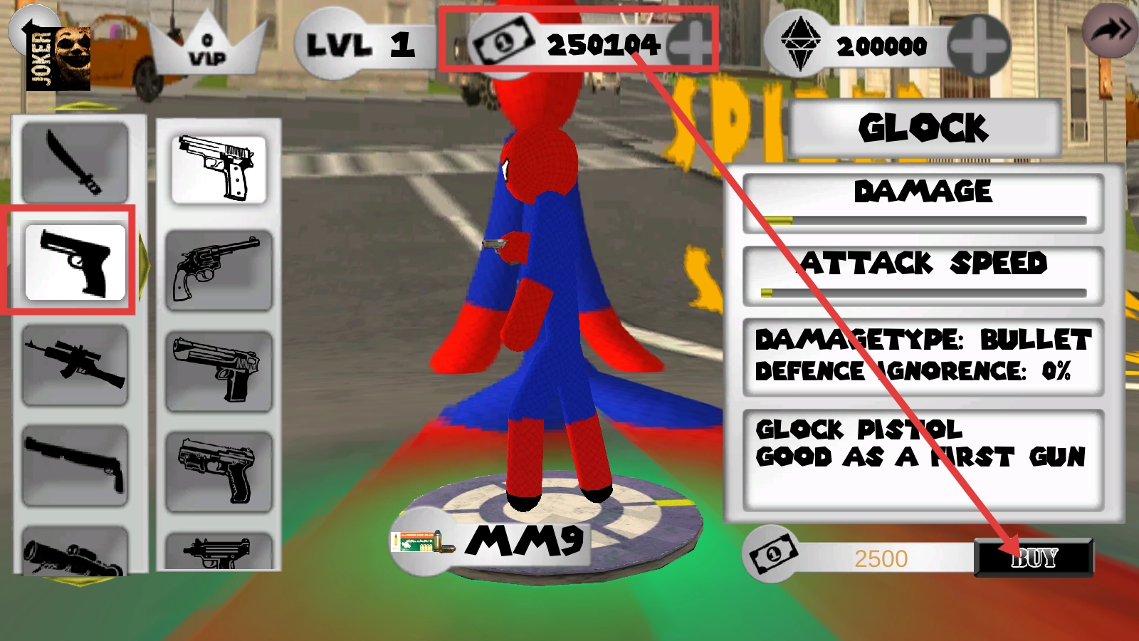 在商店里使用【250104】货币购置【GLOCK】这类武器,增强角色的攻击能力,为接下来的战斗预先做好准备。