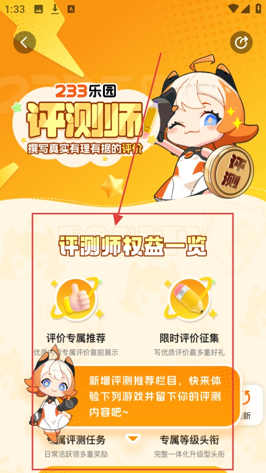 进入评测师相关页面后,我们可以看到【评测师权益一览】,从而了解成为评测师后可享受的各项权益。