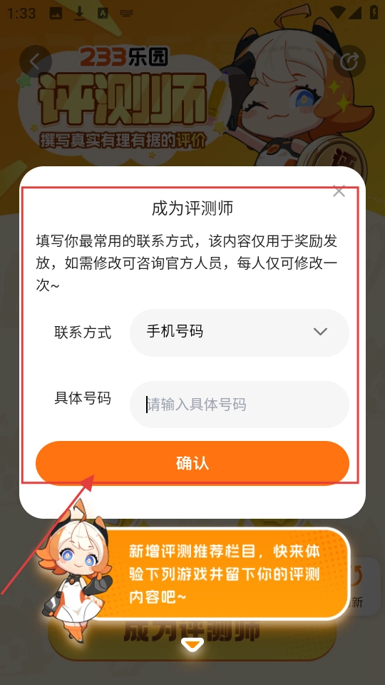 接下来,我们填写最常用的联系方式,选择手机号码这一选项,输入具体的号码后点击【确认】按钮,以此完成信息的提交。
