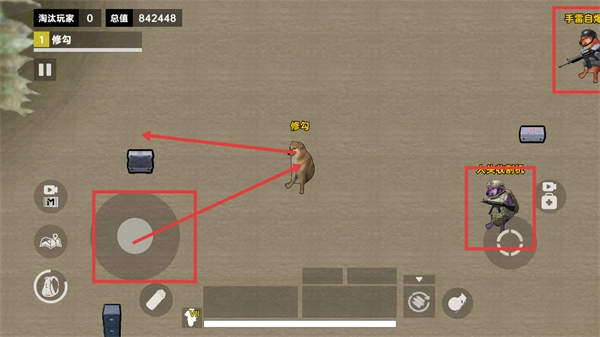 在对战的时候要留意敌方单位,像【手雷自爆】-【人头收割机】这类,通过左边的控制区域调整自己的位置来应对。