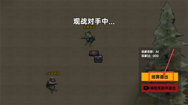 对战结束后会进入观战对手的状态,此时可以点击右侧的【结算退出】按钮来结束对局,也可以选择领取奖励之后再退出。