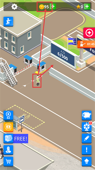 新兵完成接引进入场地后,【人口-6/500】【金币-95】会同步更新,要通过维护设施来不断提高人口引入的效率。