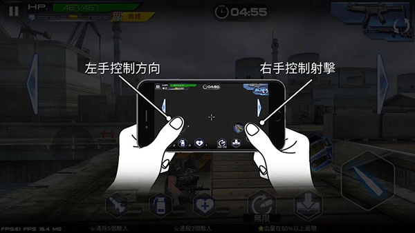 左右可以控制方向,右手控制射击;