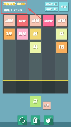 挑战高分:持续游玩积累分数达到1540,创造更大数字的方块,向着更高的分数纪录发起冲击。