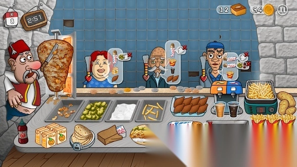在你的经营之旅中,并不局限于制作传统沙威玛。游戏提供了丰富的食材资源,你可以学习全新食谱,不断精进厨艺。通过反复尝试和改进配方,加入各式香料与配菜,最终创造出独具风味的招牌美食。每当顾客满意离去,你都能收获满满的成就感,并激励自己将餐厅经营得更好。