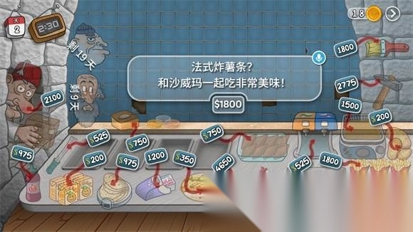 4、若已解锁法式炸薯条项目,便能够单独售卖薯条。其操作步骤相近,点击操作即可将薯条装入专用餐盒。后续通过升级,还可实现薯条自动装盒的功能。