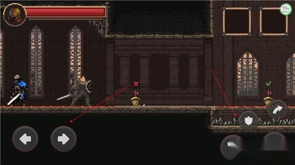 1、游戏内左边控制方向,右边分为攻击、防御、跳跃、滚动;