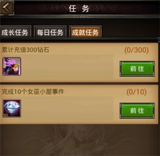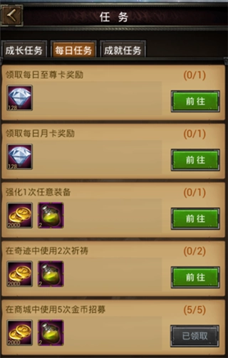 任务界面的结构可划分为成长任务、每日任务与成就任务三个主要板块,具体呈现形式可参考下方图示。