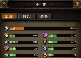 游戏内的图鉴系统收录了所有佣兵与装备的详细介绍,每当玩家获得新的佣兵或装备,对应的图鉴图标就会被点亮。进入图鉴主界面,不仅能看到已点亮图鉴的统计信息,还能查看同种族下尚未解锁的图鉴内容,方便玩家有针对性地收集。而收集图鉴数量最多的玩家,将有机会登上图鉴排行榜。