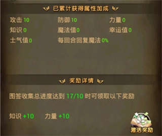 另外,当图鉴收集进度达到特定数量时,还会触发对应的奖励。激活这些奖励能够提升英雄的战斗属性。