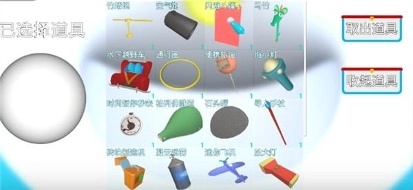 点击那个半圆形的图标,就能看到哆啦A梦的各种道具,点击道具就能直接使用啦。