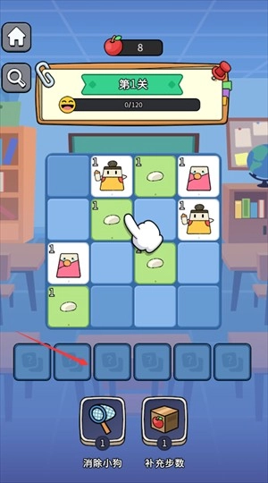 卡片提升至3级后会落入下方卡槽,把下方6个卡槽全部填满就能完成关卡