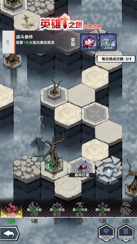 英雄之旅设有6张地图,每张地图对应一种元素,领主需派遣对应元素的英灵参与挑战。挑战成功后会掉落相应元素的道具,不过每日开放的元素地图各不相同。