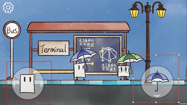 左下角摇杆控制移动,右下角摇杆控制雨伞。