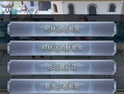 任务内容:宫殿里的侍女打算买些鲜花,可好像记不清具体想买哪一种了。你去接下她的委托吧。