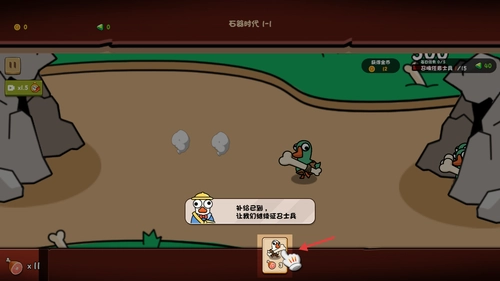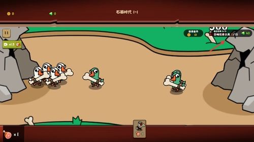 点击屏幕中央的“开始游戏”按钮,进入石器时代关卡,正式开启大鹅军团的塔防冒险之旅。