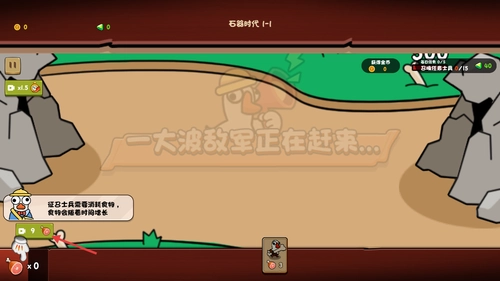 持续征召士兵以推进右上角的任务进度,稳固防线部署,从而有效阻拦敌方单位的进攻。