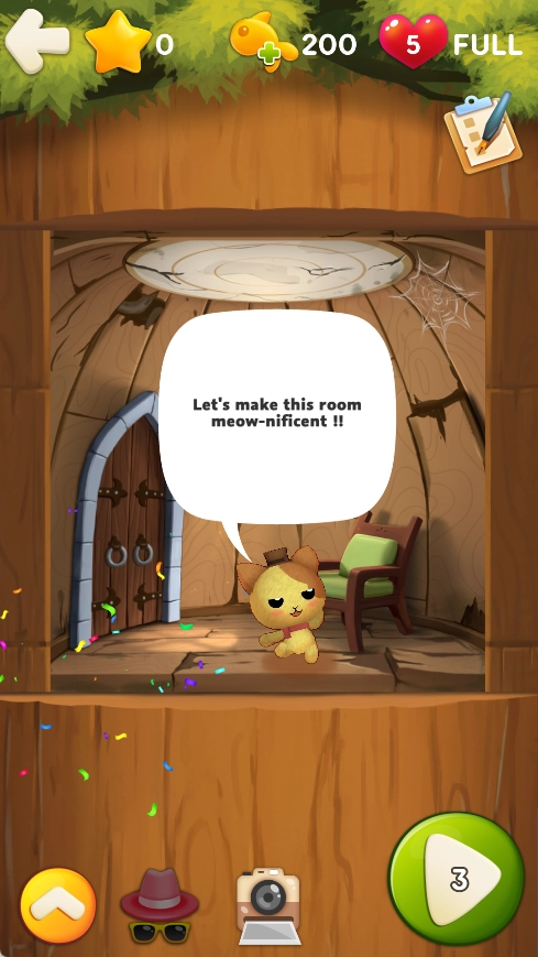 通过收集星星,就能兑换精美的家具,把它们布置在猫咪温馨的小家里。
