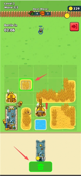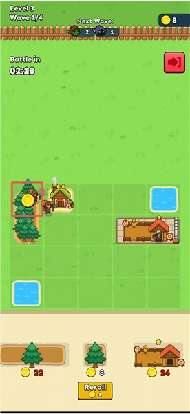 把各类田地与森林布置在网格里,收集资源并加以利用,召唤士兵投入战斗。