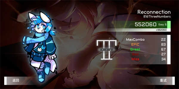歌曲结束游戏便随之结束,此时玩家能查看自己的分数,另外游戏里还有不少玩法可供大家亲自探索。