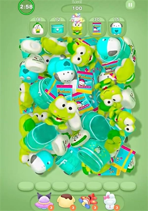 进入游戏关卡后,会出现大量角色周边,玩家的任务就是把这些周边消除掉。