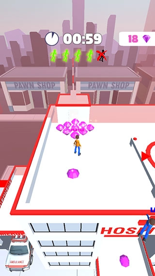 《医院逃生者》(Hospital Escaper)是一款紧张刺激的休闲跑酷游戏,游戏设定了医生与患者两个对立阵营,玩家将化身为需要逃亡的患者角色。游戏开始后,玩家会和其他AI角色一同在封闭场景里灵活移动,核心目标就是躲避负责追捕的医生。玩家可以巧妙利用场景中的地形与医生周旋:比如绕着大型车辆迂回;或是爬上高楼后从顶层跳下,借此快速摆脱医生;还能借助弹簧踏板在各个楼顶间穿梭。总之,可运用的逃生方法多种多样,想要成为一名合格的医院逃生者,就得学会随机应变。