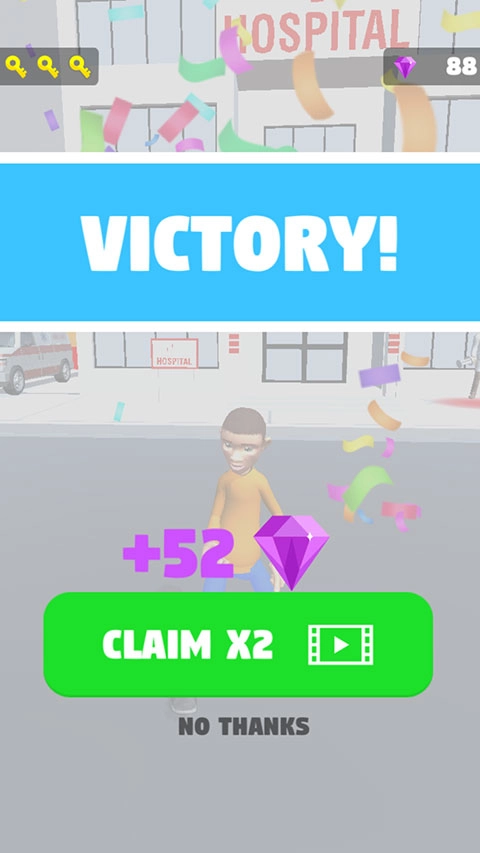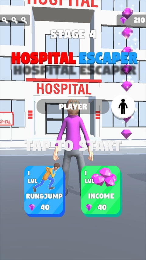 当倒计时归零后,若能成功从医生眼皮底下逃脱,就能拿下这一关的胜利。不过随着《医院逃生者》游戏进程的推进,难度会显著提升,最直观的变化就是医生数量不断增加。届时你将迎来更惊险刺激的追逐战——各路医生会提着巨型针筒从四面八方围堵你,那种窒息的压迫感绝非普通玩家能轻易扛住。 好在游戏最新版本新增了属性升级系统:玩家只需消耗对局中收集的宝石,就能强化角色的移动速度、跳跃高度等核心能力,从而更从容地应对医生的追捕。目前这款游戏热度极高,感兴趣的小伙伴不妨抓紧时间体验一番!