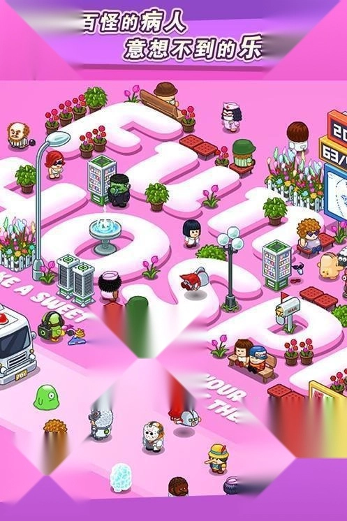 这是一款超疯狂的医院经营游戏!各种各样的奇葩元素在这里都能找到!无论是治愈系、滑稽风还是疯狂向的病症:吸血鬼患上晕血症、超人陷入低能量状态、贱兮兮的暴露狂、小丑得了坏蛋症……