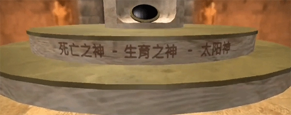触发机关后,在最上层的凸起边缘发现了最后一条提示,内容是死亡之神、生育之神与太阳神。