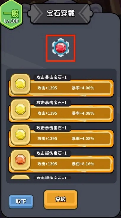 宝石的类别划分如下:总共包含六类宝石,具体为攻击宝石、攻击攻速宝石、攻击暴击宝石、攻击暴伤宝石、暴击攻速宝石以及暴击暴伤宝石。其中,攻击宝石仅增加攻击这一种属性,剩下的其他宝石则都会提供与其名称相对应的两种属性。