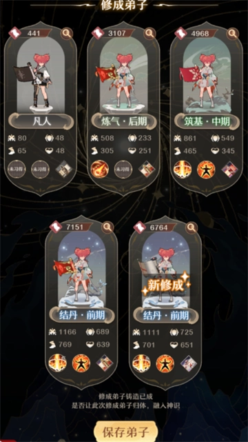 完成心得撰写后,可通过境界历程查看弟子的修炼进度与战力情况。此外,将练成的弟子保存至弟子栏位,便完成了弟子的修炼流程。以上就是《铸仙之境》弟子修炼的全部步骤,感谢各位大人的观看。