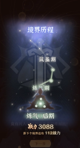 大人可看到左侧的战力要求了?弟子修行时只要战力达标,就能着手进行境界突破。目前境界从低到高依次划分为【炼气】、【筑基】、【结丹】、【元婴】、【化神】这五个阶段。