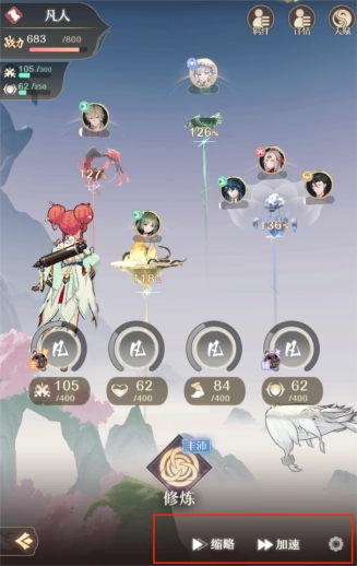 另外,开启下方的缩略与加速功能,能够快进过场动画和对话内容,从而提升养成速度。