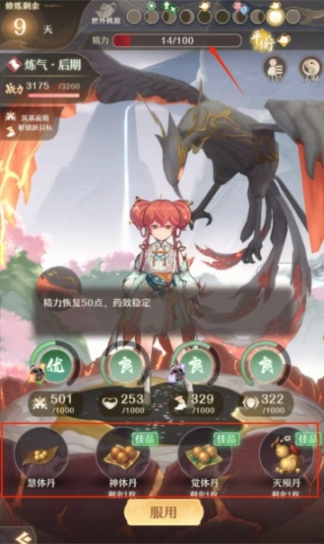 所以,当精力不够用的时候,各位大人可以点击炼丹按钮,让门下弟子服用仙药来恢复精力,如此便能再次生龙活虎地继续修炼啦。
