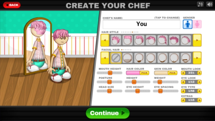 接下来会进入角色设计界面,在这里你能够自由调整角色的发型、发色、肤色、胡子等细节,之后点击下方的“继续”按钮,就能完成角色创建。
