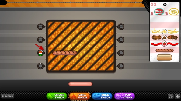 第一步是烤肠,要留意翻面的时机,等指针到了绿色区域,就能直接进行下一步操作了。