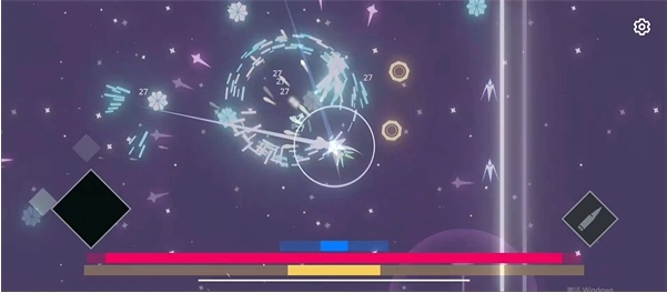 2、进入游戏后左边控制玩家移动,右边控制小飞机射击,玩家可以看到下方显示的三条提示,分别是玩家当前的经验,还有血量,护盾等等;