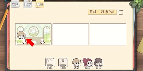 接下来是选择对应的人物,拖动人物时,上方场景会出现箭头提示其位置,玩家需要把人物拖到正确的位置、场景,甚至按正确的顺序操作才能通关。